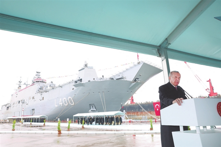 土耳其打造的首艘“无人机航空母舰”10日正式入列海军,总统埃尔多安出席了这艘名为“阿纳多卢”号的轻型航母服役仪式。埃尔多安说,土耳其生产的“旗手”TB3型无人机、“红苹果”隐形无人机和“自由”轻型战斗机均可在“阿纳多卢”号上起降。
