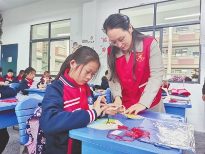 活动现场,志愿者为学生耐心讲解制作古诗贴画过程,孩子们积极动手操作,活动在温馨、和谐、快乐中进行,帮助留守儿童树立积极进取、乐观开朗的生活态度。