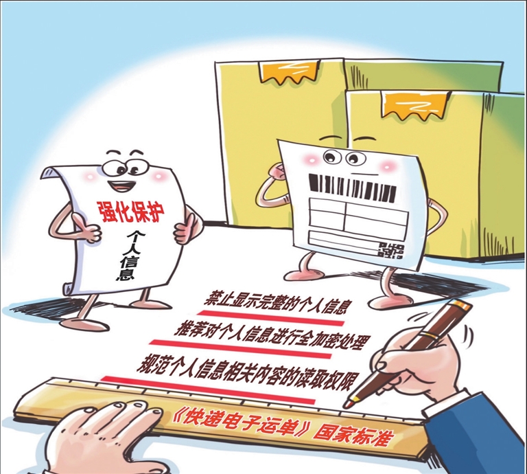 近日,国家发布实施《快递电子运单》国家标准(以下简称新国标),要求强化快递单上的个人信息保护,禁止显示完整的个人信息,推荐对个人信息进行全加密处理,规范个人信息相关内容的读取权限,此举有利于保护个人隐私,维护公共权益。