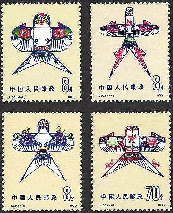 我国首套风筝主题邮票,是1980年5月10日发行的《风筝》特种邮票,一套4枚(图1)。邮票图案选自曹雪芹的《南鹞北鸢考工志》一书,分别为“雏燕”“瘦燕”“半瘦燕”和“比翼燕”风筝。曹雪芹不仅是伟大的文学家,还擅长制作风筝,喜爱玩赏风筝,对我国南北方的风筝都很有研究。该套邮票的发行,既是对风筝这一古老民族艺术的弘扬,也是对曹雪芹的一种缅怀。