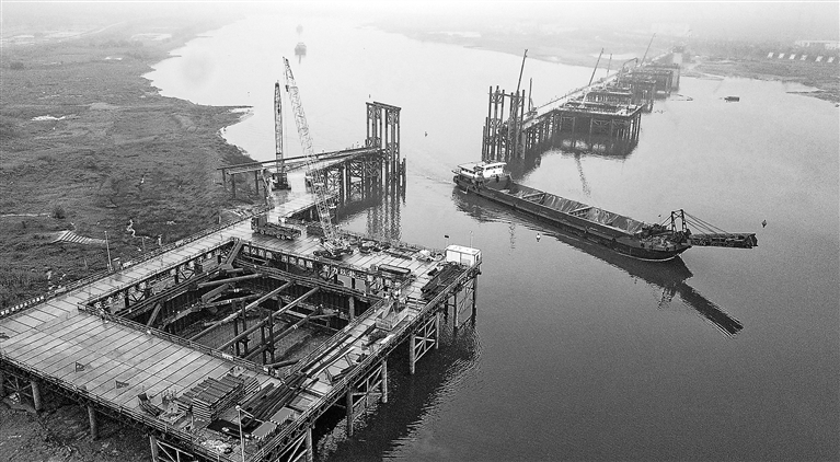 4月14日,京港高速铁路南昌至九江段隆兴大桥南支主桥施工进展顺利。跨赣江南支主桥主跨240米,塔高108米,全长510米。目前,该桥主塔承台首层已浇筑完成,为后续顺利施工打下了重要基础。