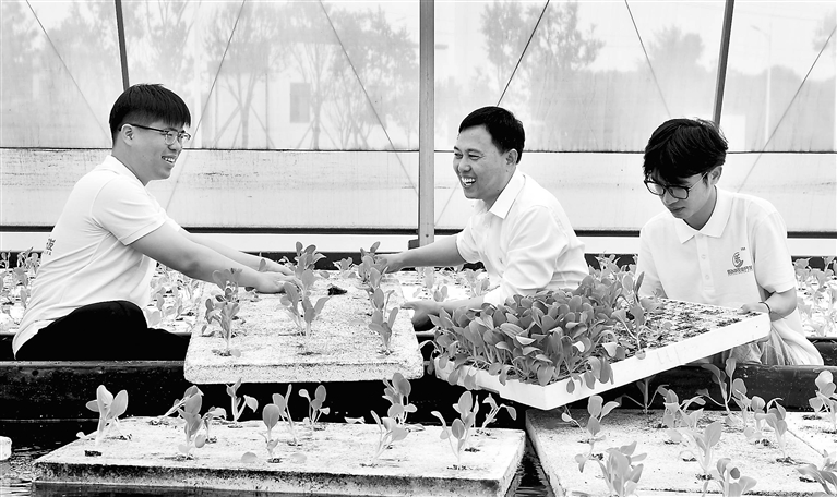 4月22日,在乐平市以色列农业科技示范园项目基地水培蔬菜大棚,工作人员在向基地技术人员了解生产、销售情况。今年以来,乐平市组织营商工作人员,深入生产车间了解企业所求所需,帮助企业发展壮大。特约通讯员 朱定文摄