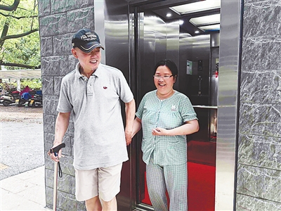 每天傍晚坐轮椅下楼在小区遛弯,和邻居聊天,是80岁老人刘冬英最惬意的时光。“以前下趟楼,要女儿女婿几个人帮我,现在坐上电梯就能一键直达。”