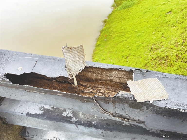 “我们已经去过现场核查,你们所看到的破损护栏,里面经纬交错的编织状物体其实是玻璃钢,这是允许在护栏上使用的。该桥建成投入使用已经在15年以上,使用年限长,所以玻璃钢护栏出现了破损。”该工作人员表示,经现场检查,护栏确实存在安全隐患,他们将尽快实施改造,把有安全隐患的护栏全部换掉。