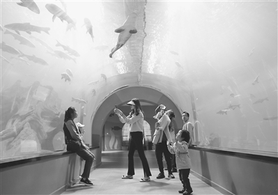 4月30日,游客在位于湖口县的长江鄱阳湖水生生物保护中心观赏长江和鄱阳湖流域特有鱼类物种,探索水底世界奥秘。该中心立体系统地展示了长江和鄱阳湖流域特有鱼类物种,包含中华鲟、胭脂鱼、鸭嘴鲨等120余种共1.2万尾水生生物及珍稀物种标本。 本报全媒体记者 吴文兵摄