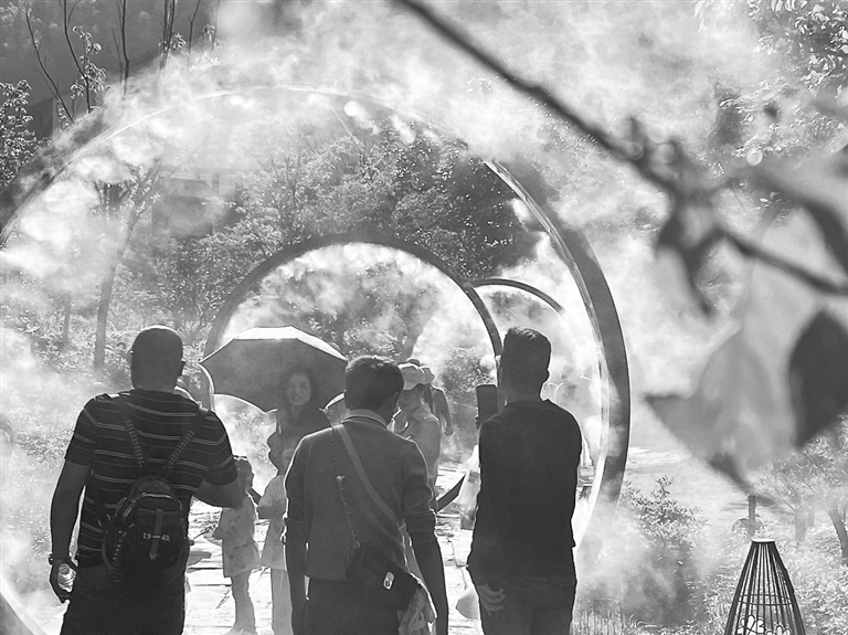 5月2日,上饶市铅山葛仙山景区内游人如织。 本报全媒体记者 蔡铖歌摄