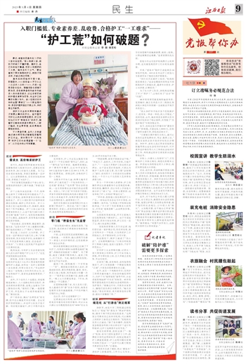 常言道,三分治疗、七分护理。护工是有一定护理知识与技巧的工种。“护理看似简单,其实有很多学问,如果操作不当,不仅会影响病人康复,还会造成‘二次伤害’。”江西省人民医院产科退休护士长龚剑红说。