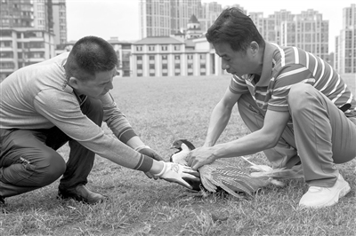 5月4日,一只国家二级保护动物白鹇飞入南昌市湾里管理局幸福街道景湾社区居民家中,该社区工作人员立即交给湾里管理局农林办工作人员放归山林。湾里生态环境良好,近年来多次发现野生动物行迹。本报全媒体记者 洪子波摄