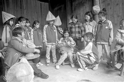 近日,上饶市广丰区桐畈镇组织党员志愿者和留守儿童,到靖安古村开展“非遗体验·斗笠编织”研学活动。在活动现场,10余名小学生了解尖头斗笠的起源、编制工艺和流程后,兴趣盎然,纷纷动手编织斗笠,在体验劳动乐趣的同时,加深了对这项非遗技艺的了解。本报全媒体记者 余 燕摄