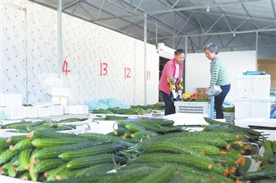 | ▼4月27日,在抚州市长江设施蔬菜示范基地内,农户正将采收的黄瓜装箱。当下,该示范基地22个蔬菜棚的黄瓜已进入采收期,日采收黄瓜1.5万公斤。