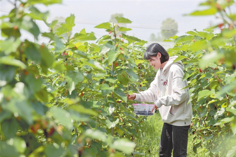 | ▶4月26日,在进贤县钟陵现代农业产业园桑葚采摘园内,游客正开心采摘桑葚。近年来,该县按照“绿色兴农、质量兴农、融合发展、品牌发展”理念,积极创建生态富硒产业聚集地,深化农旅融合,推进乡村振兴。