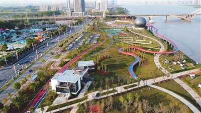 何先生和家人所去的公园,是完工不久的赣江市民公园四期。北起生米大桥,南至南莆货运铁路,全长约8.5公里,总面积约150万平方米。该公园以“大美江岸,绿意生活”为主题,在满足防洪排涝功能的基础上,不断丰富沿江市民公园文化主题,打造成集生态、文化、康体于一体的生态廊道、活力江岸、绿色公园,荣获2022年南昌市“最美城市绿道”“最美城市公园”等称号。
