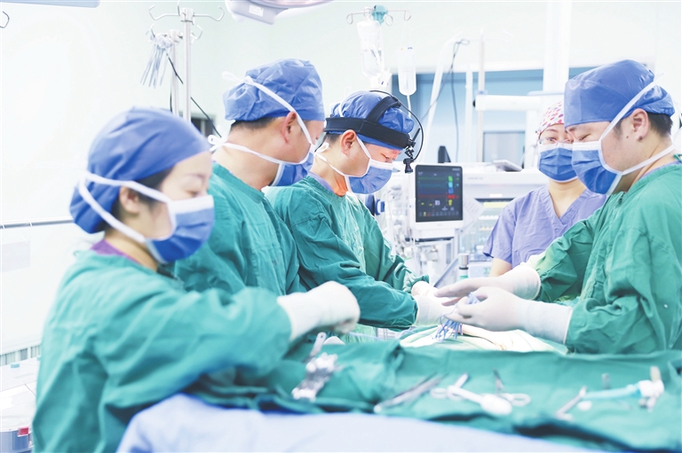 八岁男童罹患先天性漏斗胸,严重影响心肺功能,且有着一定程度的心理影响。近日,省儿童医院小儿心脏病治疗中心团队为其行胸腔镜辅助下漏斗胸NUSS纠治术。目前,男童已经康复出院。魏美娟摄
