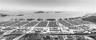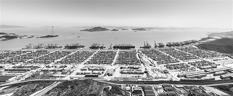 5月9日拍摄的宁波舟山港穿山港区(无人机全景照片)。