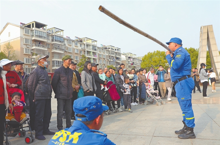 近日,蓝天救援队队员来到瑞昌市桂林街道瑞民社区,为当地居民讲解突发事件中的应急技能要领,现场互动频繁。本报全媒体记者 张翰林摄