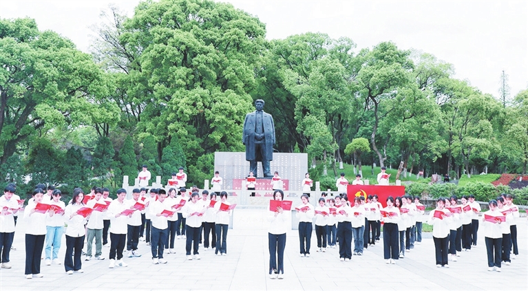 近日,江西青年职业学院师生代表前往方志敏烈士纪念园,开展百名大学生诵读《可爱的中国》活动,致敬先辈。林 辰摄