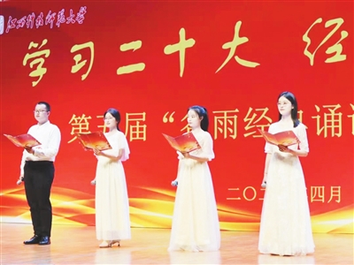 近日,江西科技师范大学第五届“谷雨经典诵读”活动落幕。活动现场,选手们用慷慨激昂的语调、饱满充沛的情感,带领观众感受中华优秀传统文化。红 梅摄
