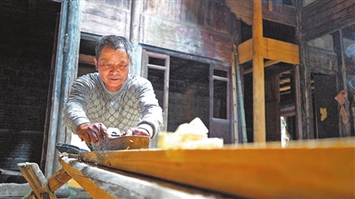 熊长军是这支维修队的队长,今年70岁,队伍有20多人,他指了指眼前的房子和工匠,一脸自豪地说:“我们在村子里修了30多栋,在全县修了近100栋,是维修古屋最多的队伍之一。古建筑的修缮不同于一般建筑物,既要修旧如旧还原风貌,也要防止建设性破坏。”熊长军将记者带到一处修缮完好的古宅前,兴奋地讲述修缮过程。当谈到队伍的年龄结构时,熊长军的神情颇有些黯然。“如今队伍里的主力基本都50多岁,年龄最大的甚至已经80岁了,40多岁的工匠都属于‘年轻人’了。”熊长军告诉记者,古建筑修缮工人的断层早年已经显现,如今则愈发明显。