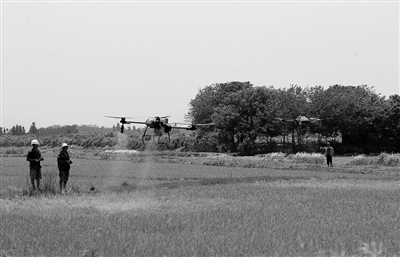 | 5月9日,在樟树市,“飞手”正在操作植保无人机喷施肥料。当前正值水稻生长关键期,该市组织农技员和植保专业化社会服务队伍分赴各村,利用植保无人机等高效植保机械开展肥料喷施,加强田间管理,确保水稻丰收丰产。本报全媒体记者 吴文兵摄 |