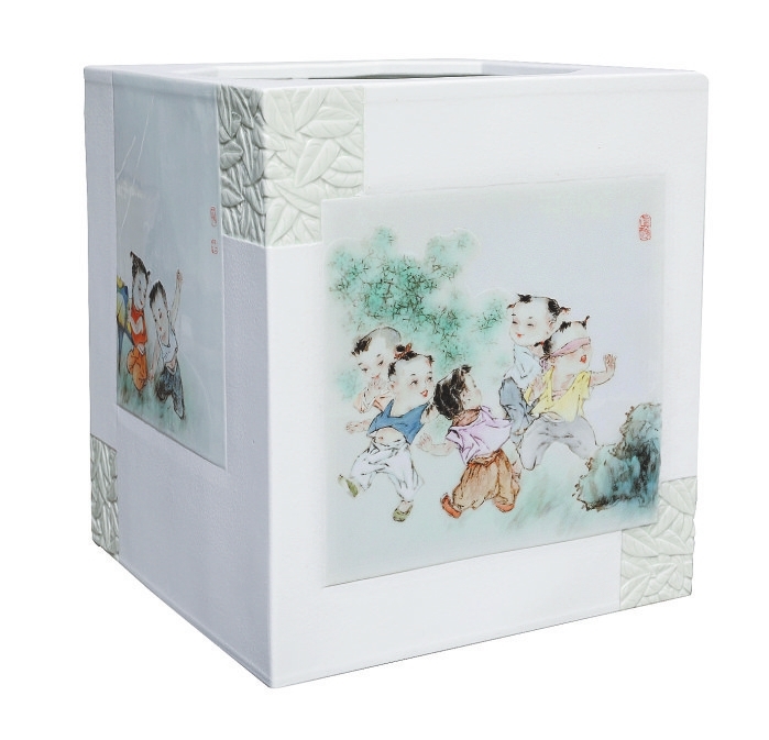 俞暄出身书香门第,受家庭氛围的熏陶和影响,俞暄从小除了对绘画有兴趣外,还喜欢音乐、诗歌、戏曲等其他艺术门类。作为当今瓷坛出色的女陶瓷艺术家之一,她将很多看似不相容的两种或多种的艺术形式杂糅在一起,形成一种个性化的艺术语言。她的作品多以纤纤仕女或乡野顽童为主体,在创作手法上,既吸收了传统中国画的神韵又结合了现代装饰画的技法,用笔灵活生动,用色浓淡相宜,单纯中蕴涵变化,构图虽然简洁,笔法却极为简括而具表现力,每一件作品都透露出超然脱俗的凝重之风和优雅飘逸的灵动之气。