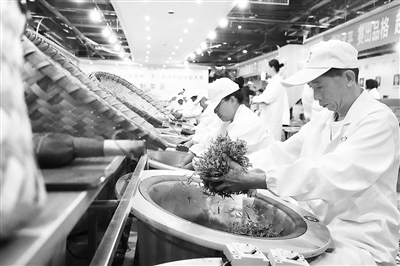 ◀5月24日,在位于九江市濂溪区的九江茶市,该市首届“庐山云雾茶杯”手工制茶职业技能大赛开幕,46名参赛选手展示手工制茶技艺,以茶为媒,以茶会友,传播茶文化。 本报全媒体记者 周亚婧摄
