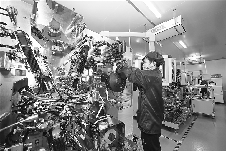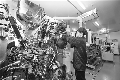 5月16日,在位于宁都县的江西汉格新能源技术有限公司,工人正在生产线上赶制锂电池。近年来,宁都县结合自身锂矿资源禀赋,通过资源招商、产业招商、链式招商,引进了一批大项目、好项目、强项目,初步形成了以锂电产业为基础的新能源产业集群。本报全媒体记者 李 劼摄