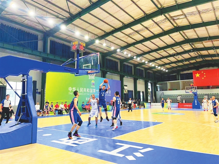 5月22日至29日,第十四届全运会群众比赛项目篮球赛决赛在南昌经开区中昌红网运动中心举行,来自全国的男队、女队各12支队伍,约300人参加此次赛事。刘 磊摄