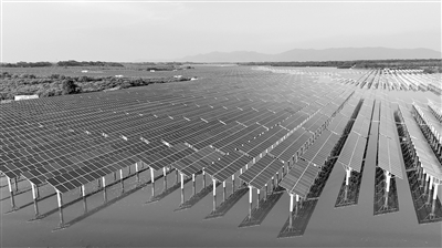 5月29日,奉新县宋埠镇跃进水库上的泰明“渔光互补”光伏发电基地,整齐划一的光伏板在夕阳映照下熠熠生辉。近年来,奉新县大力发展光伏产业,进一步改善生态环境,实现节能减排。 特约通讯员 邓建刚摄