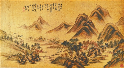 清代书画家黄海(生卒年不详)也是婺源人。他擅绘山水、梅兰松竹,初宗董源,后仿荆浩、关仝,多用水墨,清雅绝伦。本次展出他的作品有两件,即《古梅清芬图》(图右)《匡庐村居图》(图上)。