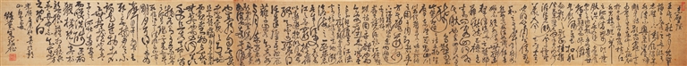 明代婺源人余绍祉(1596-1648),字子畴,号疑庵居士,屡试不第,筑室读书,潜心撰述,善属文,工行草,以诗人、书法家著称。展出的这件手卷作品(图下左),长3.34米,高0.33米,内容为苏轼的《前赤壁赋》。人称其“行草追钟张,海内所宝”。其诗文“神骨苍然,隐秀而不露”,著有《晚闻堂集》《元丘素话》等。