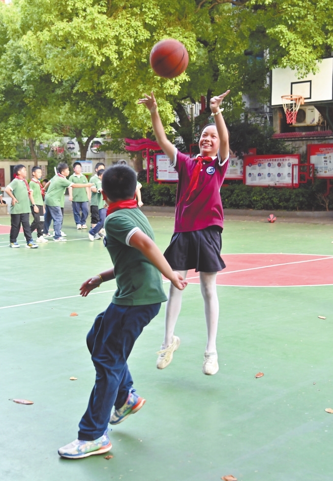 5月26日,在南昌市东湖小学校园里,学生们参加篮球、击剑、面塑等特色课后服务课程。为落实好“双减”政策,该校不断优化课后服务内容,丰富校园文化生活,促进学生全面发展和健康快乐成长。