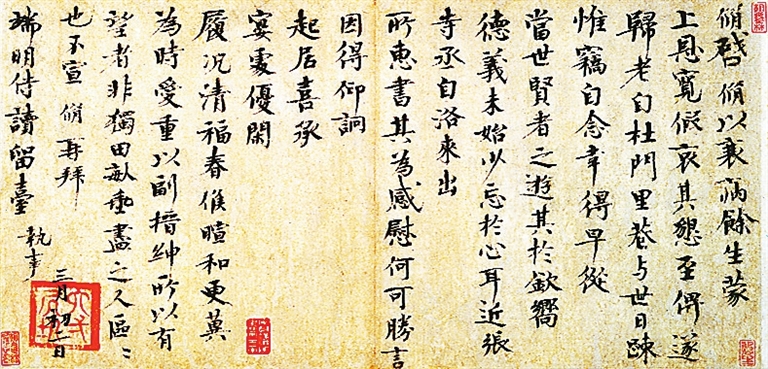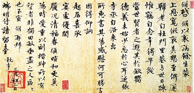 欧阳修书法水平到底如何?苏轼有两段话颇为中肯:“欧阳文忠公用尖笔干墨,作方阔字,神采秀发,膏润无穷。后人观之,如见其清眸丰颊,进趋裕如也。”“欧阳公书笔势险劲,字体新丽,自成一家……公墨迹当为世所宝,不待笔画之工也。”“尖笔干墨”,即露锋瘦挺,于飞白处见苍茫;“方阔字”,则体势宽博,可窥端庄之学者气度。朱熹谓“欧阳公作字如其为人,外若优游中实刚劲”。引言所述,更多地从人品上肯定欧公书品,而苏轼一句“不待笔画之工也”,却无意中透露出了欧书之缺憾。