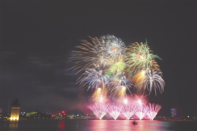 白天,赛场挥桨激战,音乐、文旅活动精彩上演;夜幕降临,烟花秀、光影艺术季将九龙湖的艺术氛围拉满。6月10日晚,九龙湖喷泉广场临近湖面的位置,水幕音乐喷泉烟花秀闪耀登场。浪漫的烟火、动人的音乐、绚丽的光影,由烟花、舞剧、水幕表演等编排而成的喷泉烟花秀给观众带来一场如梦如幻的视听盛宴。“南昌九龙湖风光秀美、水域开阔、夜色迷人,生活在这座城市的市民太幸福了!香港到南昌交通便捷,以后我还会带家人和朋友来这里旅游。”观看完喷泉烟花秀的香港龙舟队教练黎文骏不由赞叹。