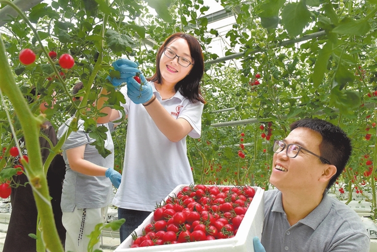 6月7日,在乐平市后港镇以色列农业科技示范园项目基地高科技蔬菜大棚内,工作人员正在采摘圣女果。近年来,乐平市引进集工厂化无土栽培技术、精准滴灌技术等现代化农业技术于一体,并同时具有水肥一体化、温湿度管控智能化的高科技蔬菜大棚,带动农业增产增收。特约通讯员 朱定文摄