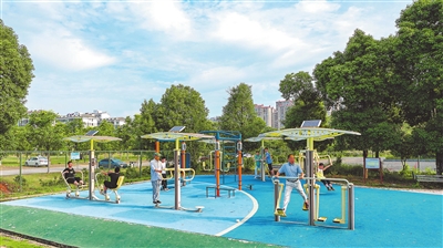 6月11日,吉水县一体育公园,市民正在晨练。近年来,吉水县持续推进便民型公园绿地建设,因地制宜将城市闲置空间打造成集健身、休闲、赏景等功能于一体的口袋公园,既满足市民健身需求又美化城市环境。