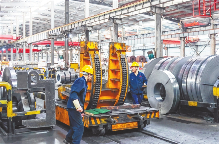 6月4日,位于新余经济开发区内的新余市永利带钢有限公司生产车间内,工人正在紧张有序地进行生产。