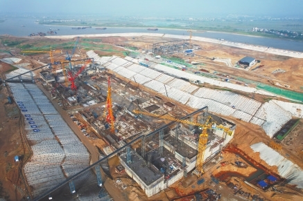 6月中旬,气温节节攀升,赣抚尾闾工程的施工进入黄金期。赣江入鄱阳湖的主支、北支、中支、南支4条支流上的4个拦河枢纽,与抚河下游的塔城枢纽、八字脑闸两个拦河枢纽一起,构成赣抚尾闾综合整治工程“六坝共筑”的壮阔场面。