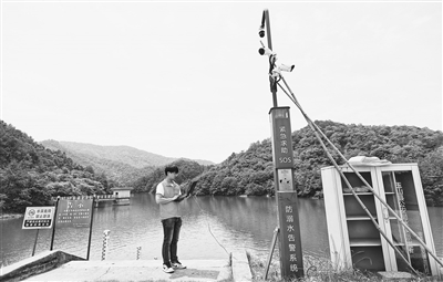 6月11日,在玉山县冰溪街道金交水库旁,工作人员正在调试监控及预警设备。玉山县创新打造5G+防溺水预警系统,通过信息录入、人脸识别、AI对比、远程喊话等,对进入危险水域的人员进行声光报警,筑牢防溺水安全屏障。本报全媒体记者 徐 铮摄