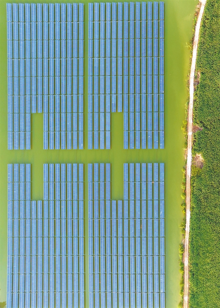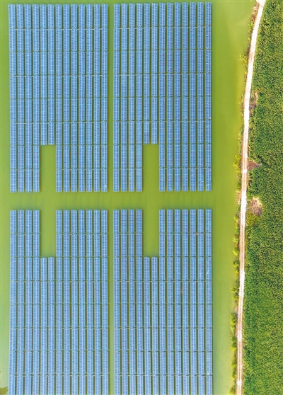 6月10日,瑞昌市某光伏发电站与周边景致相映成景,构成一幅美丽画卷。近年来,瑞昌市因地制宜实施“渔光互补”项目,发挥自然资源效应,实现“水上能发电、水下能养鱼”。特约通讯员 魏东升摄