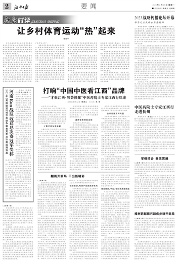 庄兆林指出,要深入学习贯彻习近平总书记在文化传承发展座谈会上的重要讲话、致首届文化强国建设高峰论坛开幕的重要贺信精神,更好担负起新时代新的文化使命,为推动中华文化走出去、增强中华文明传播力影响力贡献江西力量。要坚定文化自信,着力把赣鄱传统文化挖掘好,让赣鄱大地的灿烂文化“活起来”。要突出守正创新,着力把文化交流品牌打造好,推出一批可感知识别、有价值内涵,在国内外叫得响、立得住的文化品牌。要秉持开放包容,着力把江西精彩故事讲述好,推动新时代赣鄱文化更好走向世界、绽放光彩。