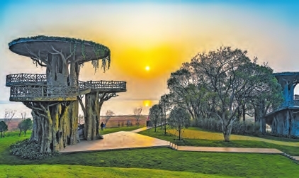 永修通过改造吴城集镇,建造候鸟地标——中国鄱阳湖生态文明展示中心,全景展示候鸟文化与地域特色的完美融合;搭建别致独特的观鸟平台,打造观鸟研学基地。根据吴城历史盛景,复建望湖亭,打造吴城排工巷文化历史街区,精心布局经济业态元素,带动“观鸟经济”蓬勃发展,使吴城的千年记忆和现代体验融为一体、交相辉映,也让“候鸟王国、世界湿地”——永修吴城享誉世界。