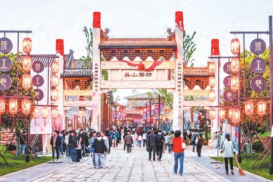 吴城排工巷以“古镇根脉 老街记忆”为主题,通过提升改造街道环境,移植传统建筑艺术,发掘商镇历史底蕴,重塑商坊繁盛景象,打造集文商汇聚、会馆展示、民俗荟萃、休闲体验、极客创意等为一体的吴城特色老街。
