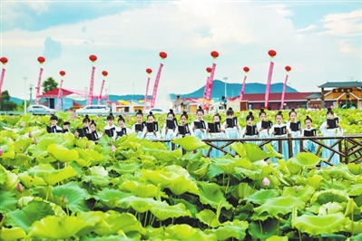 瑞昌市青螺湾生态休闲园举办的荷花文化艺术节,以荷花为媒,走出了“文旅融合、绿色发展”的先行之路,带动乡村旅游,推动乡村振兴。现主要建有“一心一环三区八园十二景”,是一个汇聚非遗文化、知青文化、移民文化、生态文化和荷文化的金色田园,一个集美景、美游、美食、美宿、美娱、美购于一身的秀美水乡,一个融“土、野、俗、古、洋”五味于一园的休闲胜地。