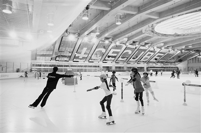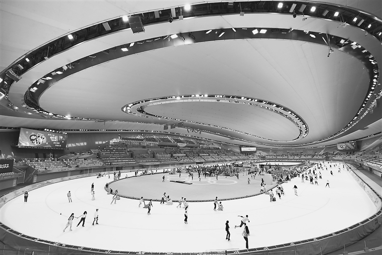 7月1日,游客在“冰丝带”滑冰游玩。新华社记者 鞠焕宗摄
