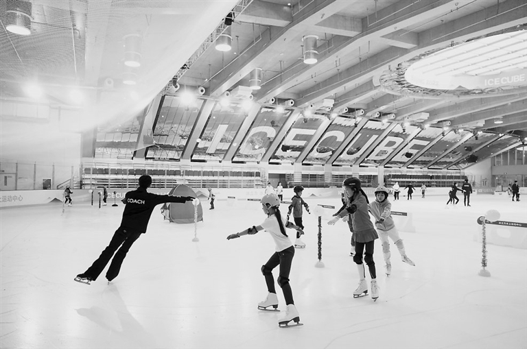7月1日,小朋友在“冰立方”学习滑冰。 新华社记者 任 超摄