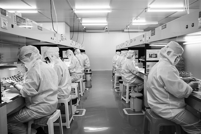 6月27日,位于上饶市信州区朝阳产业园的上饶市宇瞳光学有限公司厂房内,员工正在检查镜头镜片质量。该企业专注于光学镜头镜片的研发、生产、营销,产品应用于安防、电子、车载、视觉等领域,远销欧美等30多个国家和地区。