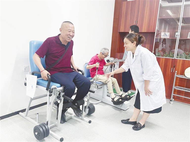 “先在综合训练器上锻炼锻炼”“加油,你现在进步很明显”……6月28日,在三店西社区残疾人康复站,志愿者医生正在指导几名残疾人进行康复训练,他们一边训练一边互相鼓励。