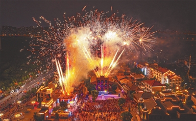 7月8日晚,原城纪·南昌城市文化街区举行首场烟花秀表演。烟花秀集灯光、音乐、活动、演艺为一体,为游客带来一场精彩绝伦的视觉盛宴。本报全媒体记者 史港泽摄