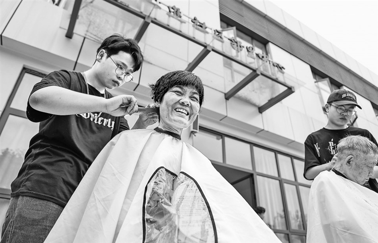 近日,南昌市青云谱区徐家坊街道社工站在二进社区开展志愿服务活动,为社区居民提供义务理发、视力检测等多项服务。本报全媒体记者 史港泽摄