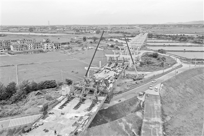 ▼7月4日,由中铁大桥局承建的南昌西二环项目TJ3标东阳特大桥建设现场,工人们奋战正酣。南昌绕城高速公路西二环项目是省市重点建设项目,也是南昌都市圈重要公路交通线。连日来,江西持续高温,该项目工地采取错时施工的方式,确保如期完成建设任务。 王蕴蓉摄